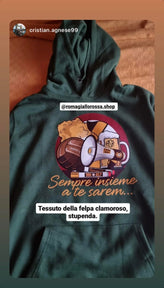 NOI SIAMO ROMA - NEW COLLECTION FELPA NERA MODELLO 1.89 x 90 KG indossa taglia XL Felpa con maniche set-in, unisex a tre strati, felpata internamente, cappuccio a doppio strato, grande tasca a marsupio, struttura con cuciture laterali, fascia in vita...